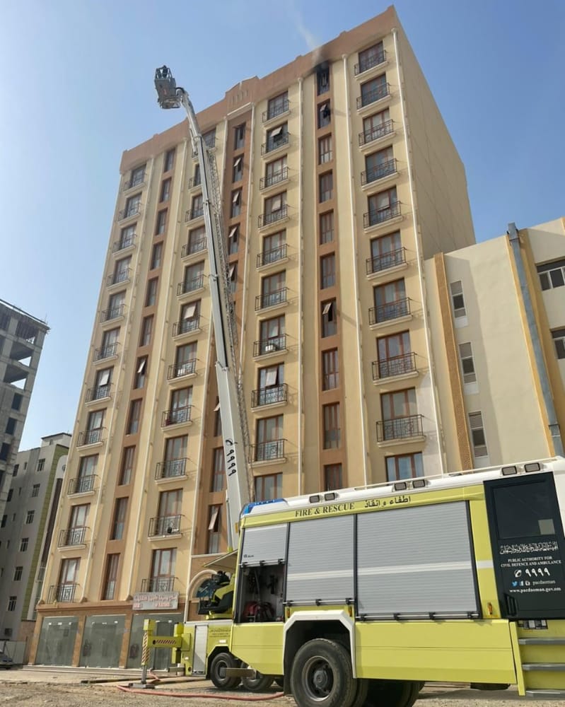 ذكرت هيئة الدفاع المدني والإسعاف عبر حسابهم في تويتر بأن فرق الاطفاء بمحافظة مسقط تمكنت من إخماد حريق شب في شقة بإحدى البنايات بمنطقة المعبيلة الجنوبية بولاية السيب ، حيث تم إخلاء المبنى وإنقاذ شخص بواسطة الرافعة الهيدروليكية وهو بصحة جيدة.