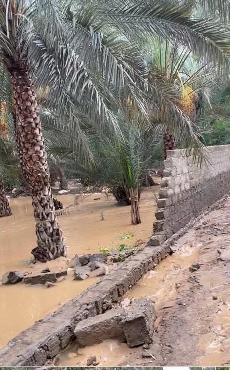 من جهة أخرى أدى قوة جريان وادي البطحاء لوقوع اضرار حيث تسبب في سقوط عدد من اشجار النخيل وانهيار بعض الاسوار وطمر سواقي الافلاج بالطين وإغلاق المسارات بين هذه المزارع.