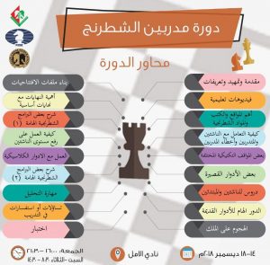 تنطلق يوم غد الجمعه دورة مدربي الشطرنج الاسيوية لمدربي الشطرنج على مستوى السلطنه للفتره من 14-18 من الشهر الجاري .