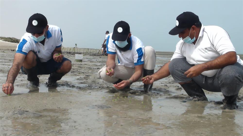 البيئة تقوم بنثر مليون بذرة من أشجار القرم بمحمية الأراضي الرطبة بولاية محوت