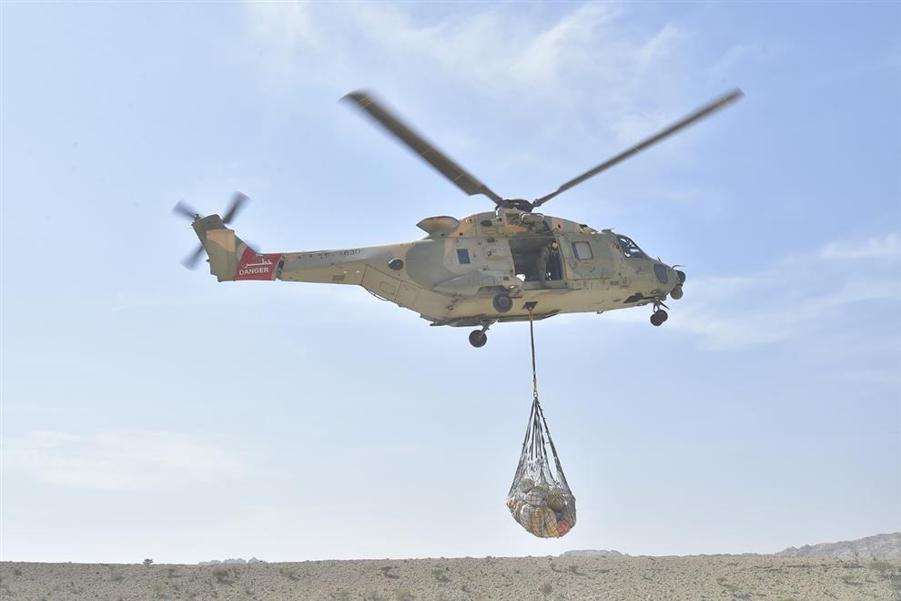قام سلاح الجو السلطاني العُماني صباح اليوم وبإسناد من الجيش السلطاني العُماني بتسيير إحدى طائراته العمودية إلى أهالي قرى جبل الكور التابع لولاية بهلاء بمحافظة الداخلية؛ لنقل المواد الاستهلاكية إلى أهالي تلك المناطق وتسهيل مهمة إيصال هذه المواد للمواطنين القاطنين فيها لصعوبة الوصول إليها بواسطة الطرق البرية.