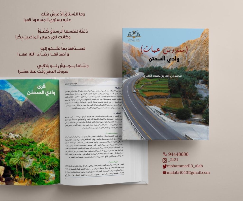 لمؤلفه محمد بن زاهر العبري الذي يسلط الأضواء على مكنونات هذا الوادي انطلاقاً من تسميته بمندوس عمان ، وما يحتويه من إرث حضاري ، وتنوع جغرافي من خلال موقعه المتفرد ، مروراً بقرى الوادي ، وأبرز قبائله ، والعلماء والشخصيات السحتنية ، إضافة إلى أبرز المعالم والمواقع السياحية ، وصولاً إلى