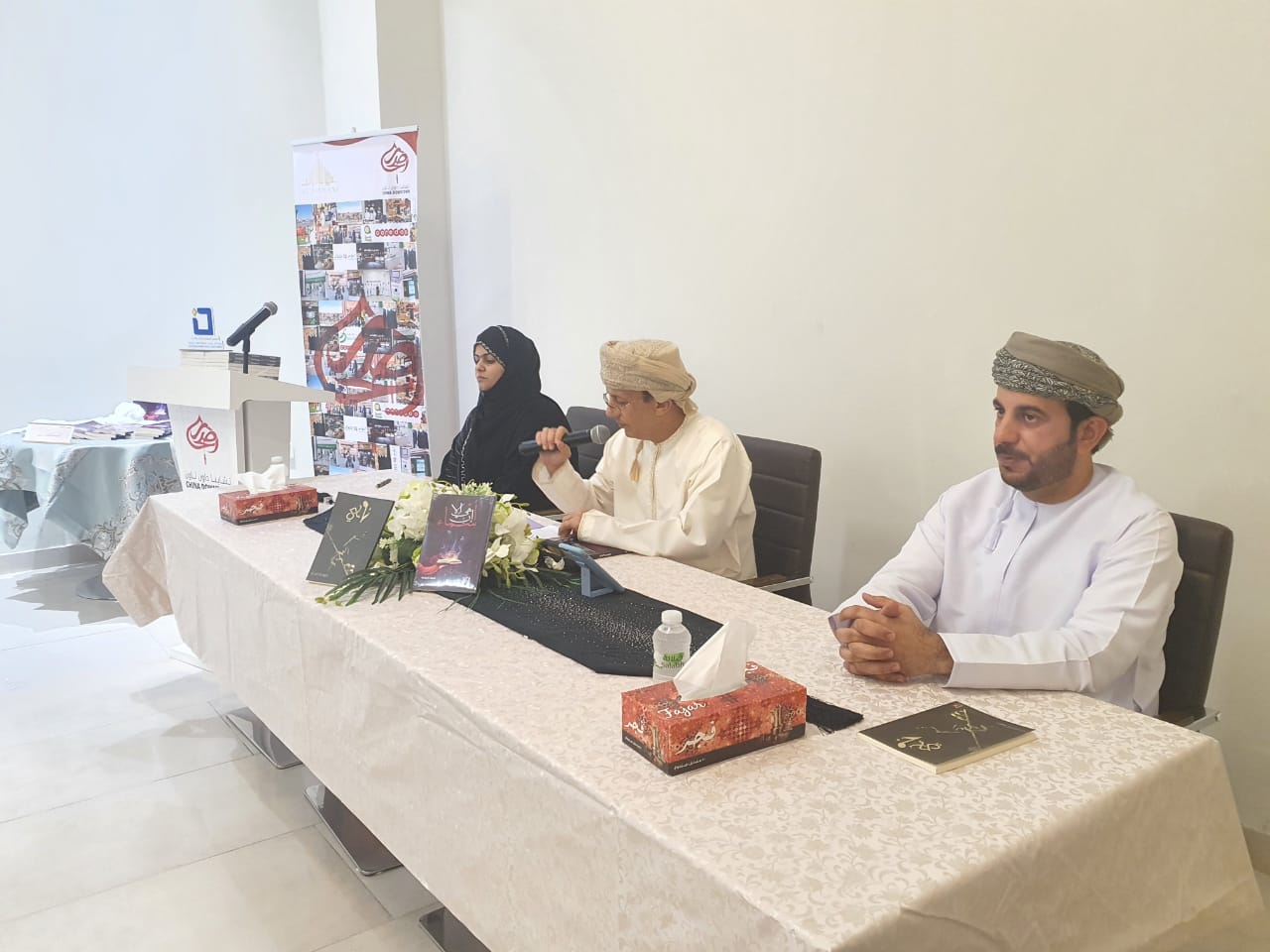 دشنت لجنة كتاب وأدباء محافظة شمال الباطنة اصدارين جديدين للكاتبة أسماء الحوارية عن كتابها (إن هي إلا أسماء) والكاتب والشاعر خليفه الحامدي عن كتابه الشعري (ناي) أقيمت الاحتفالية في مركز تشاينا داون تاون بفلج القبائل تحت رعاية الطيب بن عبدالنور الفارسي رئيس مجلس إدارة نادي مجيس وبحضور الدكتور خالد العلوي رئيس لجنة كتاب وأدباء شمال الباطنة وعدد من متذوقي الشعر والكلمة المعبرة.