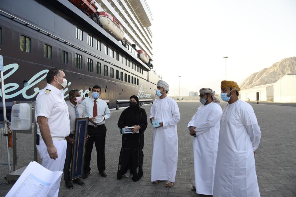 الجدير بالذكر أن هذه الزيارة الأولى للسفن السياحية لموانئ سلطنة عمان بعد الانقطاع في الفترة الماضية جراء تداعيات الجائحة وتأتي بعد اعتماد البروتوكول الخاص باستئناف نشاط السفن السياحية، وفي هذا الصدد حرصت وزارة التراث والسياحة وبالتنسيق مع الجهات ذات العلاقة على الدعوة لتطبيق كافة الاجراءات الاحترازية والوقائية للحد من انتشار الفايروس طبقاً للتعليمات الصادرة من اللجنة العليا.