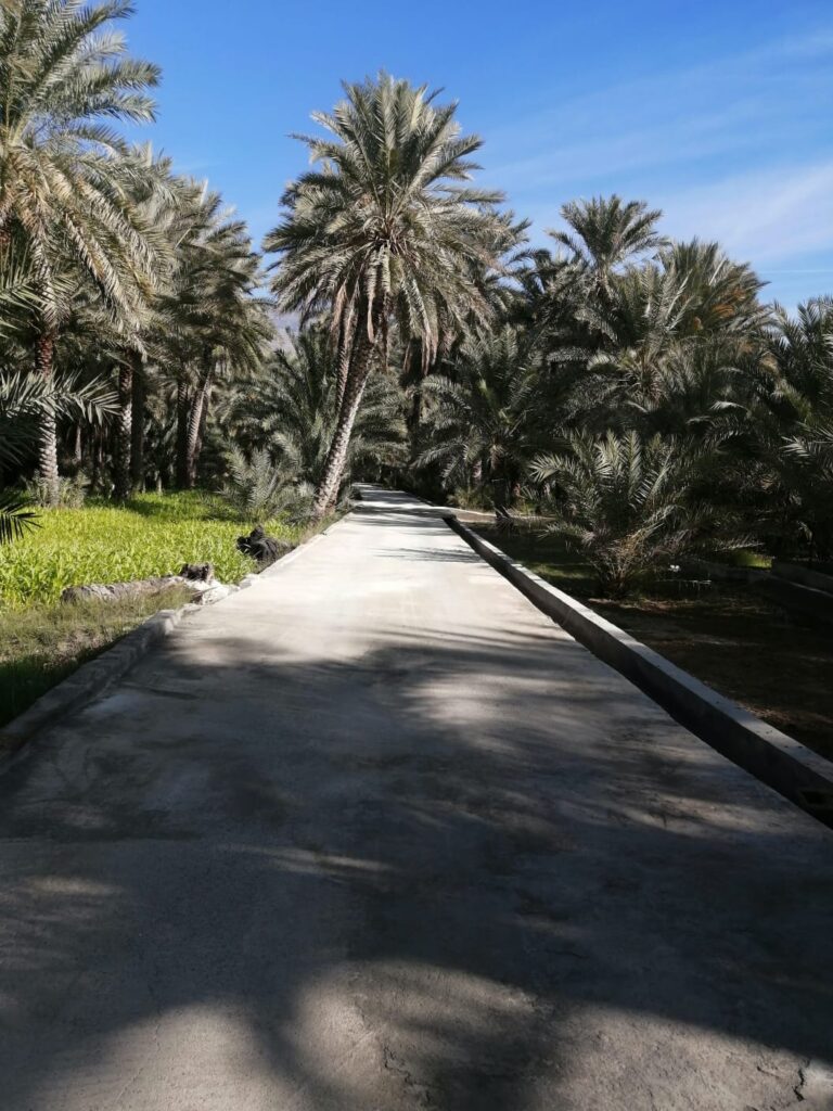 الجدير بالذكر أن هذه الطريق هي من الطرق السياحية التي يرتادها السياح للوصول إلى الحارة ويبلغ عرض الطريق اربعةوطولها حوالي ٣٨٠ مترا يتخللها عشر قناطر تمت معالجتها لتقاوم مرور السيارات، وتنتهي هذه الطريق من جهة الحارة ببوابة كبيرة (صباح النعب) تتسع لمرور السيارات، وقد كانت هذه البوابة قديما إحدى البوابات التي تغلق ليلا هدفا لامن الحارة في ذلك الوقت. استغرق العمل في الطريق حوالي أربعة أشهر وقدرت تكلفة العمل ما يقارب عشرة ألاف ريال عماني وهذه التكلفة بطبعة الحال سددت من تبرعات الأهالى هذا بالإضافة إلى الجهود التي بذلوها في الاطمئنان على جودة العمل.