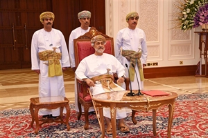 تفضّل حضرةُ صاحبِ الجلالةِ السُّلطان هيثم بن طارق المعظم /حفظه الله ورعاه / فالتقى بشيوخ ولايات محافظتي الداخلية والوسطى، صباح اليوم بحصن الشموخ العامر بولاية منح.