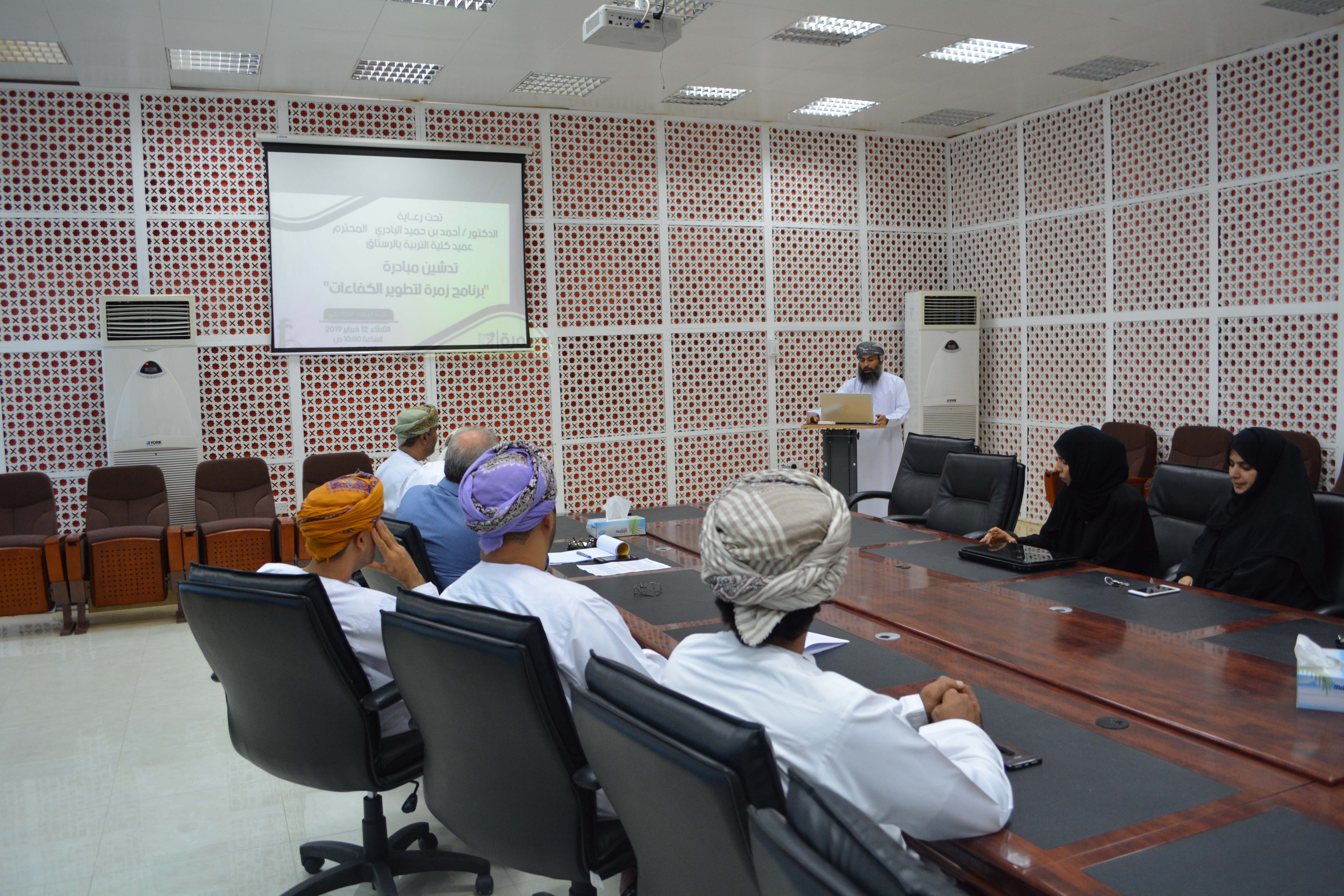 دشنت كلية التربية بالرستاق مبادرة زمرة لتطوير الكفاءات لتحقيق الأهداف الاستراتيجية ، حيث تم التدشين برعاية الدكتور أحمد البادري عميد الطلية .