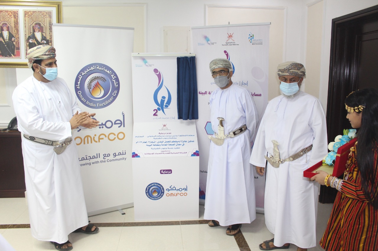 دشنت بلدية جنوب الشرقية جائزة اوميفكو للعمل البلدي (انجاز2) بدعم من الشركة العمانية الهندية للسماد. وقد رعى فعاليات حفل التدشين سعادة الدكتور / يحيى بن بدر المعولي محافظ جنوب الشرقية. وبحضور المهندس عبدالله بن سالم الحجري المدير العام للبلدية ومسؤولي من المؤسسات الحكومية وممثلي الشركة الداعمة وأعضاء المجلس البلدي . حيث تضمن حفل التدشين تدشين شعار الجائزة والتعريف بالجائزة .