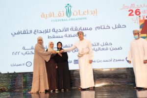 ضمن فعاليات معرض مسقط الدولي للكتاب ٢٠٢٢ نظمت صباح اليوم الأربعاء وزارة الثقافة والرياضة والشباب حفل ختام التصفيات النهائية لمسابقة الأندية للإبداع الثقافي بمحافظة مسقط 2021-2022 للمرحلة الثانية في مجال المسرح (الديودراما) والشعر الفصيح والفنون الشعبية وفي مسابقة عُمانيات (مسابقات ثقافية) وذلك تحت رعاية عبدالله بن محمد الحارثي مدير عام المعرفة والتنمية الثقافية بوزارة الثقافة والرياضة والشباب على مسرح أحمد بن ماجد.