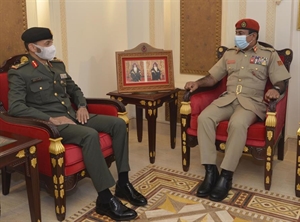 وقد رحب قائد الجيش السلطاني العماني بقائد القوات البرية بدولة الإمارات والوفد المرافق له متمنياً لهم طيب الإقامة من جانبه عبر الضيف عن سعادته لزيارة سلطنة عُمان، وتم خلال المقابلة تبادل وجهات النظر، ومناقشة عدد من الموضوعات العسكرية ذات الاهتمام المشترك، وبما يخدم مجالات التعاون العسكري القائم بين الجيش السلطاني العماني والقوات البرية بدولة الإمارات العربية المتحدة.