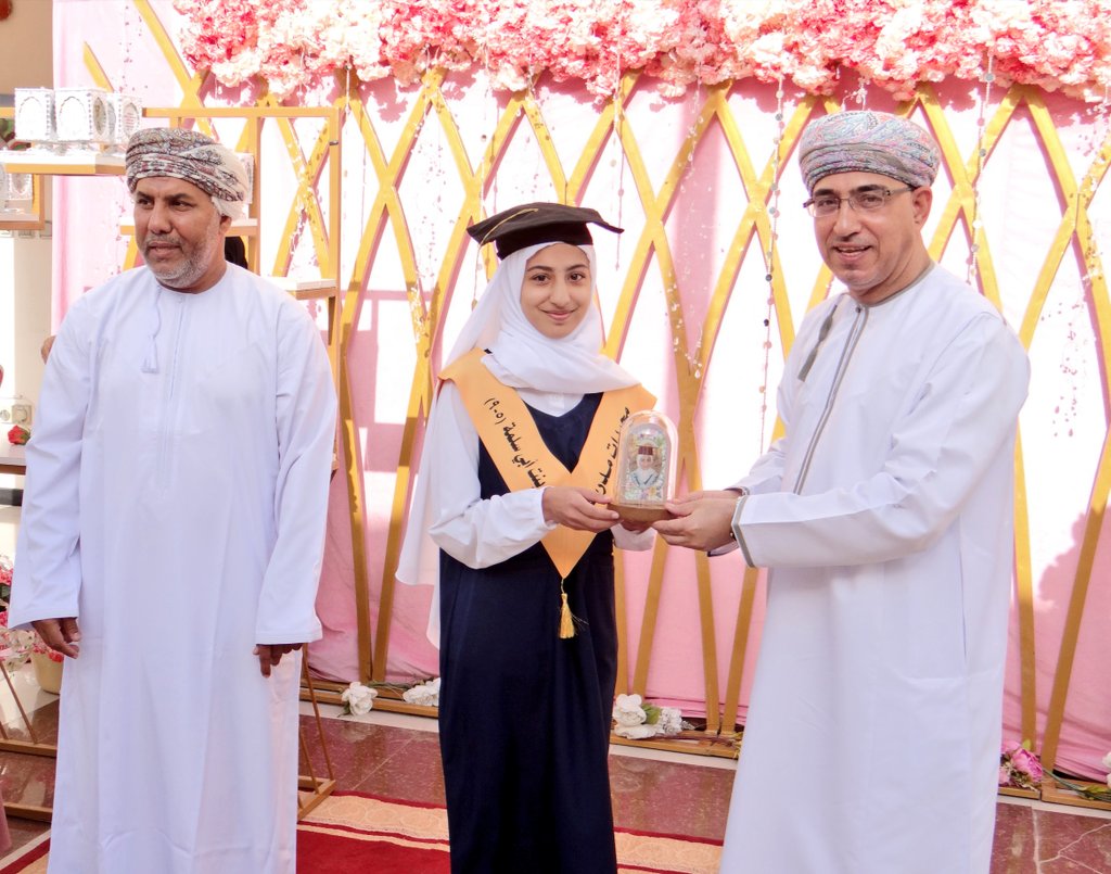 وفي الختام تم تكريم الطالبات المجيدات في التحصيل الدراسي والطالبات المجيدات في مسابقة حفظ القرآن الكريم ومسابقة إتقان التلاوة والصوت وتكريم طالبات الدمج وفريق المدرسة الحاصل على المركز الأول على مستوى محافظة شمال الباطنة في كرة اليد وقدمت إدارة المدرسة هدية تذكارية لراعي المناسبة.