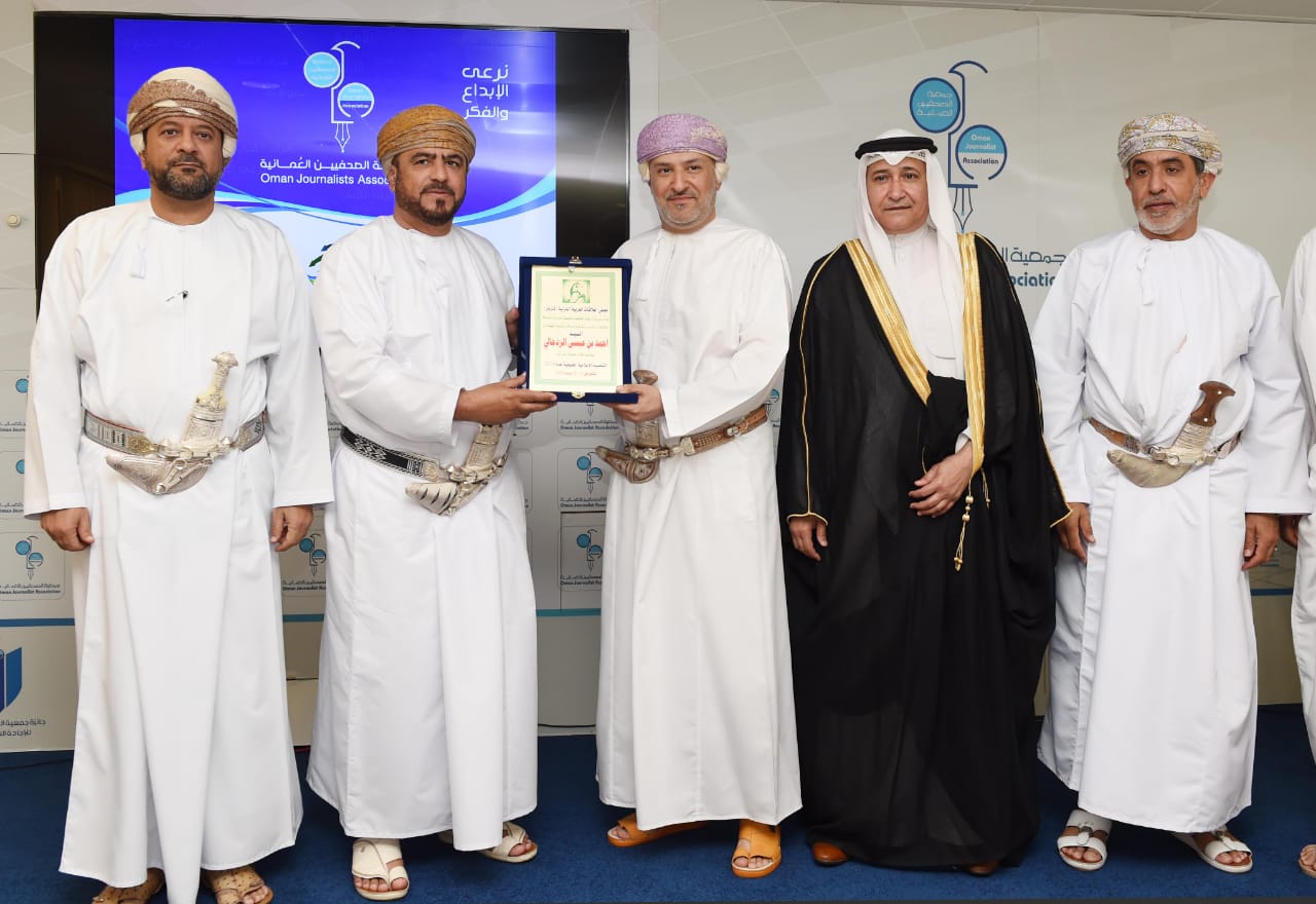 أحتفل اليوم بمقر جمعية الصحفيين العمانية بمرتفعات المطار بتسليم جائزة الشخصية الإعلامية الخليجية لعام ٢٠١٩ للأستاذ أحمد بن عيسى الزدجالي رئيس تحرير جريدة الشبيبة تحت رعاية سعادة الدكتور خالد بن سالم السعيدي أمين عام مجلس الدولة بحضور الدكتور محمد بن مبارك العريمي رئيس جمعية الصحفيين العمانية.