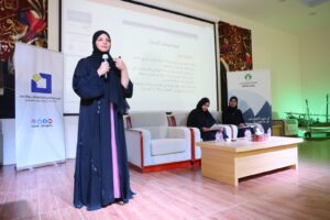 بعد ذلك تم تقديم محاضرتان قيِّمتان كانت الأولى بعنوان : (فيتامينات الدماغ “ماذا يحدث داخل رؤوسنا”) قدمتها رحمة بنت محمد بن جمعه الساعدية وأدارتها الاستاذة / جميعه السنانية – وتناولت المحاضرة محاور تمثلت في الحاضر واليقظة الذهنية وبناء العلاقات (الدماغ الإجتماعي) وكذلك الدوبامين والشعور بالسعادة.