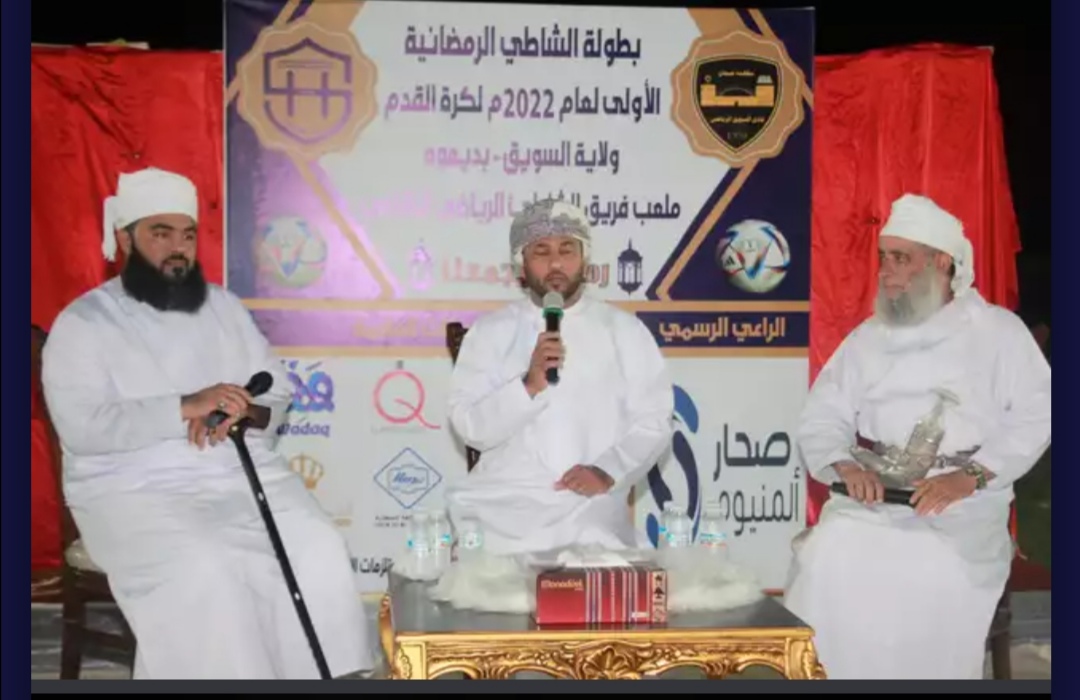 نظم فريق الشاطي الرياضي الثقافي بولاية السويق أمسية دينية على ملعب الشاطي الرياضي بمنطقة بديعوه ضمن بطولة الشاطي الرمضانيه الأولى لكرة القدم لعام ٢٠٢٢م، وذلك تحت رعاية المقدم المتقاعد الشيخ/ سالم بن عبدالله الجرادي وبحضور عدد من الضيوف الشيخ سالم النعماني والشيخ أحمد الذيابي والإعلامي محمد المهري وكذلك حضور عدد من الشخصيات المجتمعية من داخل الولاية وخارجها.