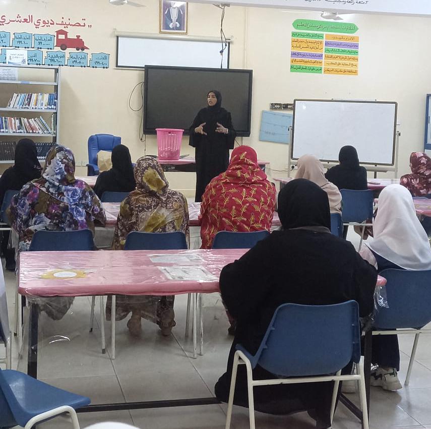 وقد استهدفت الورشة طالبات ومعلمات المدرسة بالإضافة إلى عضوات مجلس الأمهات بالمدرسة.