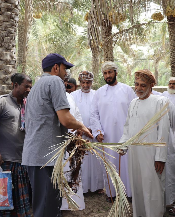 نظمت دائرة الثروة الزراعية والسمكية وموارد المياه بولاية الخابورة معسكر عمل لمسح واستكشاف وعلاج سوسة النخيل الحمراء وتبيان مخاطر الحشره على أشجار النخيل وطرق الوقايه منها وعلاجها بقرية صنعاء بني غافر ، بحضور عدد من أعضاء المجلس البلدي بالولاية ومشاركة واسعة من أهالي القرية والفنيين وفرق العمل الميدانية لبرنامج مكافحة حشرة سوسة النخيل الحمراء والبحوث الزراعية وتم علاج بعض النخيل وإزالة النخيل شديدة الإصابة والتعامل معها بالطرق الفنية الموصى بها من قبل الوزاة