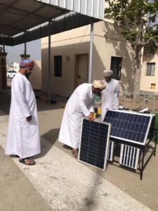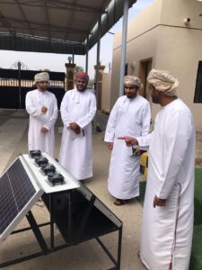 تحدث بداية الأستاذ خلفان بن سعيد المقبالي المشرف على المشروع عن فكرة الابتكار قائلا: المشروع عبارة عن ابتكار في بناء نظام تبريد للمظلات المدرسية، وذلك لتوفير بيئة مناسبة للطلبة أثناء استخدامهم للمظلة، ويتركب نظام التبريد من وحدتين: الأولى توضع فوق المظلة تجمع ضوء الشمس، والأخرى تركب على جوانب المظلة وتعمل على تبريد المظلة،
