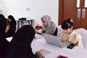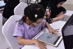 حيث قدمت الأستاذة مريم بنت بلال البلوشية معلمة تقنية معلومات بمدرسة لوى للتعليم الأساسي ورشة تصميم الألعاب الإلكترونية على برنامج السكراتش والتي تهدف إلى تعليم الطلبة لغة برمجية تتعلق بإنشاء رسوم متحركة وألعاب وقصص تعليمية .
