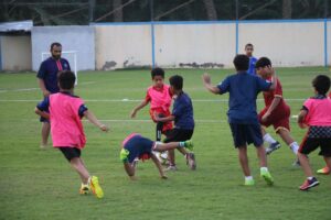 أما في الملعب الآخر للفريق، فقد تم تقسيم اكثر من 100 لاعب من البراعم والأشبال والناشئين إلى عدة فرق وتم عمل مباريات بينهم بنظام خروج المغلوب.