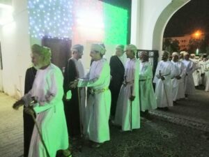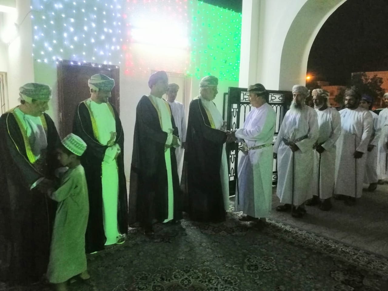 هذا وقد تبادل الحضور التهاني بهذه المناسبة السعيدة ، تعلو محياهم البهجة والفرحة والسرور ، مستبشرين بالإنجازات التي تحققت على مختلف الأصعدة وفي مختلف ربوع البلاد الغالية في ظل النهضة المتجددة التي يقود زمامها مولانا حضرة صاحب الجلالة السلطان هيثم بن طارق المعظم حفظه الله ورعاه ، تلهج ألسنتهم بالدعاء والضراعة إلى المولى عز وجل أن يديم نعمة الصحة والعافية على جلالته أبقاه الله وأن يمده بالعمر المديد ، وعلى عماننا الغالية نعمة الأمن والأمان والرقي والتقدم والإزدهار وعلى الشعب العماني بالرفعة والعز والمجد .