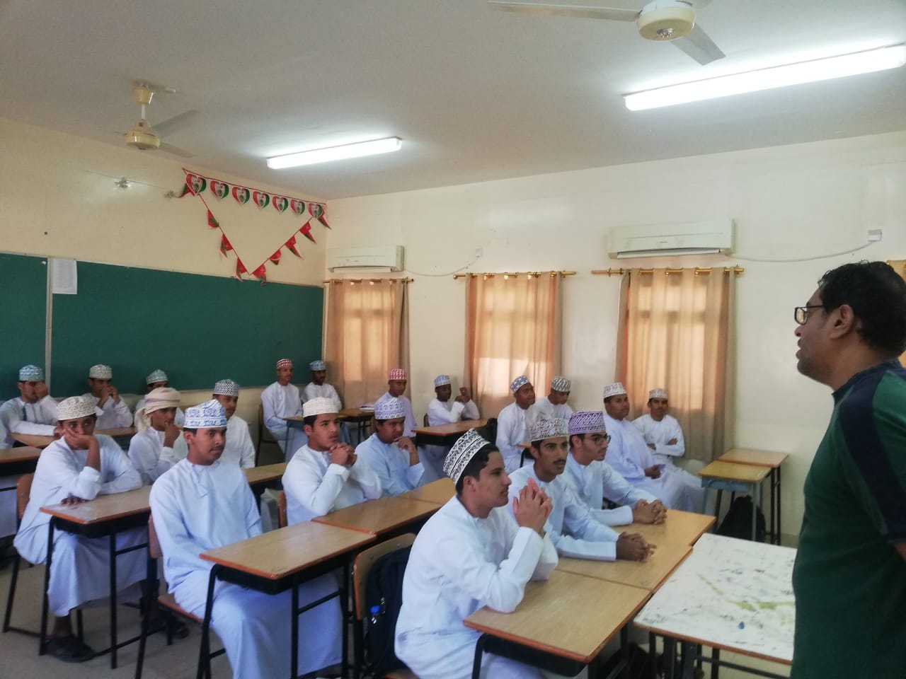 وايضا حصة الأنشطة المدرسية والبرنامج الصحي التي نفذهها الأستاذ أمجد المحروقي أخصائي مصادر التعلم بمدرسة، وحصة الأنشطة المدرسية والبرنامج الوطني (الفنون الشعبية العمانية) التي نفذها الأستاذ وليد أبو زيد.