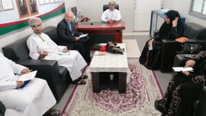 زار البروفيسور الألماني / تيسير صبحي يامين يرافقه الدكتور طارق بن حمود الخروصي المدير المساعد بدائرة التشخيص ورعاية الموهوبين بوزارة التربية والتعليم والدكتورة موزه بنت هلال السعدية رئسة قسم التربية الخاصة بوزارة التربية والتعليم والأستاذة آمنه محمد علي البلوشية مدير مساعد دائرة التربية الخاصة والتعليم المستمر بمديرية التربية والتعليم لمحافظة جنوب الباطنة والأستاذ سيف بن ناصر الجابري مشرف لغة عربية بالمديرية العامة للتربية والتعليم لمحافظة جنوب الباطنة وكان في استقبالهم حمدان بن زاهر الغافري مدير المدرسة والأستاذ طالب بن سليمان الخضوري مساعد مدير مدرسة عثمان بن مظعون للتعليم الأساسي.