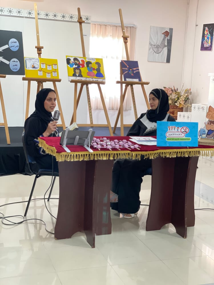 وتخلل الفعالية معرض لطالبات مدرسة أم سليم للتعليم الأساسي عبرت فيه الطالبات عن الحالة النفسية التي تصيب الأشخاص من جراء ظاهرة التنمر من خلال أعمالهن الفنية التي لاقت إعجاب الحضور.
