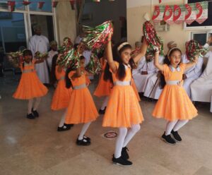 منها لقاءات لإستذكار منجزات النهضة المباركة في عهد قائد البلاد المفدى والتحفيز على بذل المزيد من الجهد والعطاء والتفاني في خدمة الوطن ، صاحبها القاء قصيدة شعرية تجسد مشاعر الحب والولاء والعرفان للوطن وباني نهضته، إضافة الى لوحة ترحيبية وإوبريت وطني ابتهاجا بالعيد الوطني المجيد.