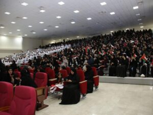 وقدم الطلبة لوحة فنية لصورة صاحب الجلالة السلطان هيثم بن طارق المعظم، وعبر سعادة الدكتور رئيس الجامعة عن شكره للقائمين على الحفل وإعجابه بالفقرات التي اشتمل عليها الحفل التي تظمنت العديد من الأهداف السامية والهادفة والمحتوى الطيب.